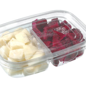 PET Rectangular 2-Compartment Sliced Fruit Container with Lid